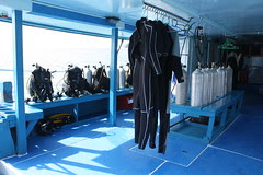 Three Trees: Denominada así por encontrarse en el fondo 3 grandes troncos, inmersion de arrecife y fondo de arena a 20 metros, buenísima para encuentros de Tortugas verdes (Green Turtles) alimentandose en el Coral estaca de ciervo, multitud de Cristal fishes en varios pequeños pináculos en la arena y peces pipa(pipefish), mantener siempre un ojo en la arena para divisar Khul´s Stingrays, podremos ver también Peces Rana (Frog Fishes) y nunca nos fallará aqui el Pez Ballesta Payaso (Clown Trigger Fish)